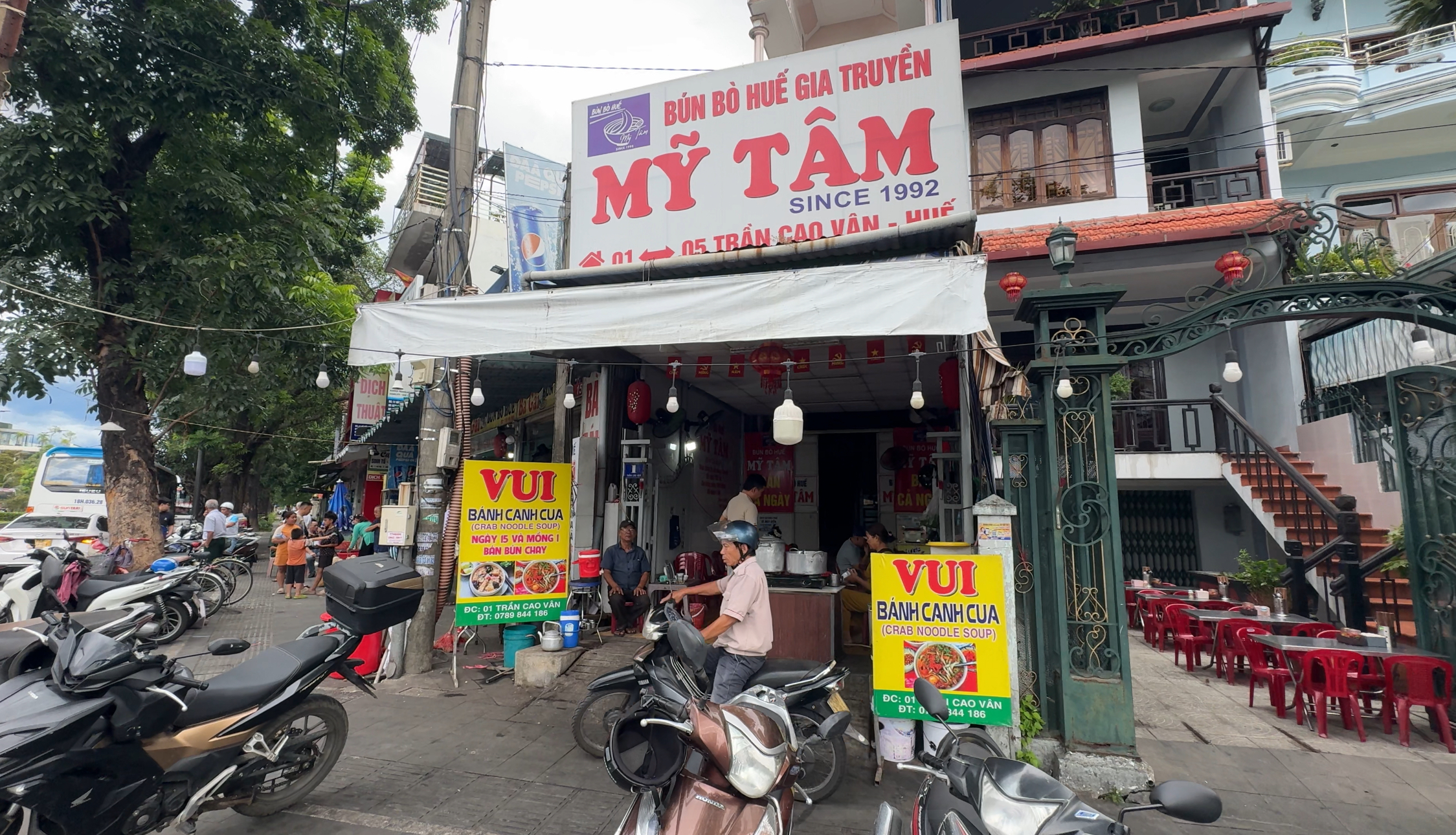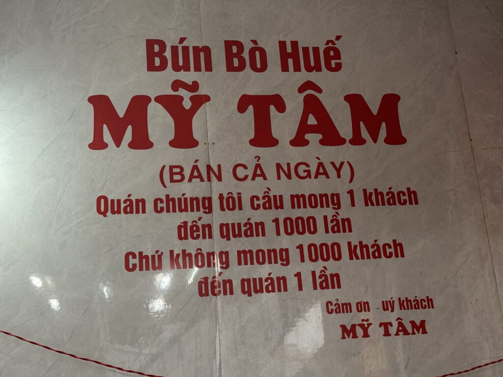• 店の正面には「Bún Bò Huế MỸ TÂM(ミー・タム)」という看板。