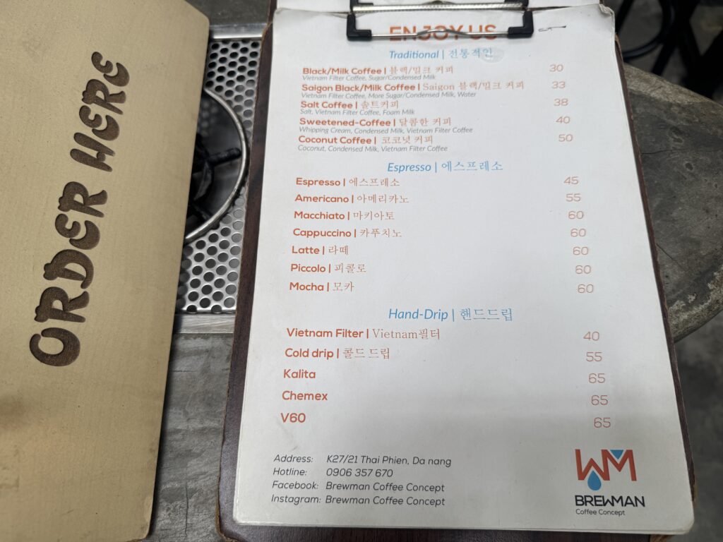 ?早見表|BREWMAN Coffee Concept(ダナン)