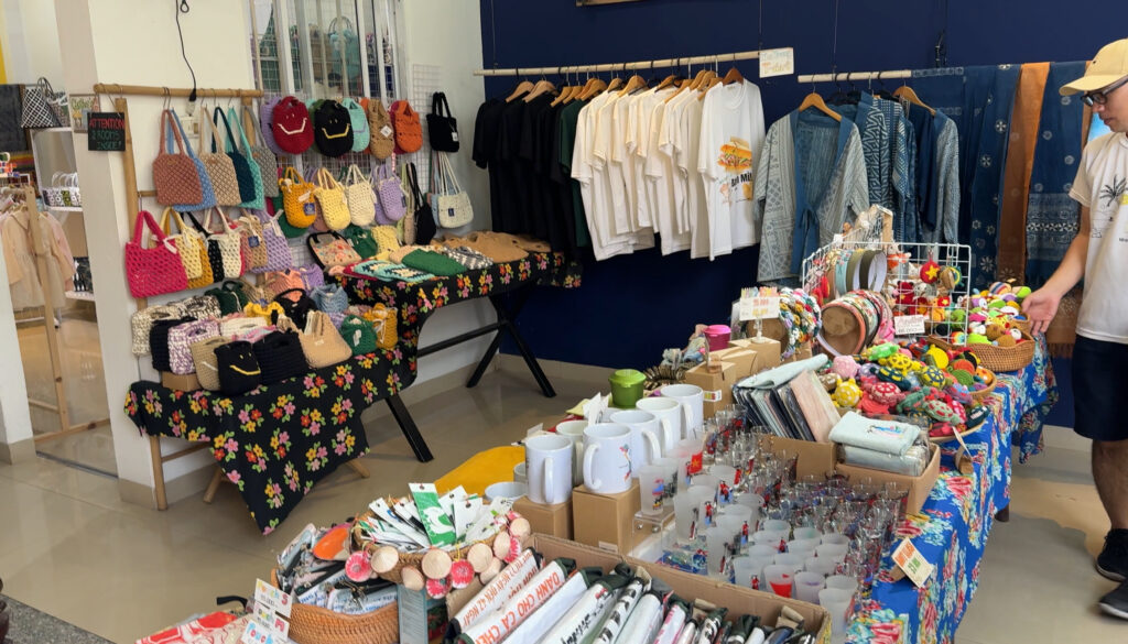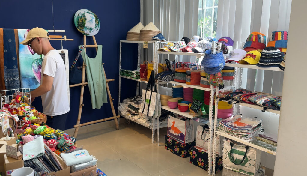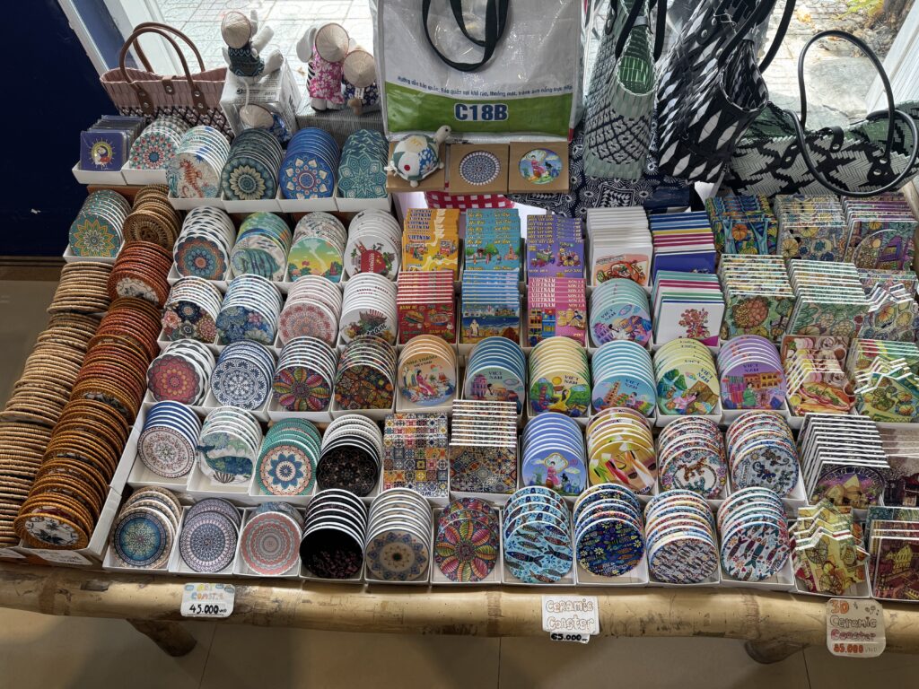 店内には、ベトナムらしい色づかいの小物やアクセサリー、ステッカー、ポストカード、布小物など、プレゼントにちょうど良い雑貨が並びます。食べ物系は少なめなので、「長く使えるお土産」を探している人にぴったり。